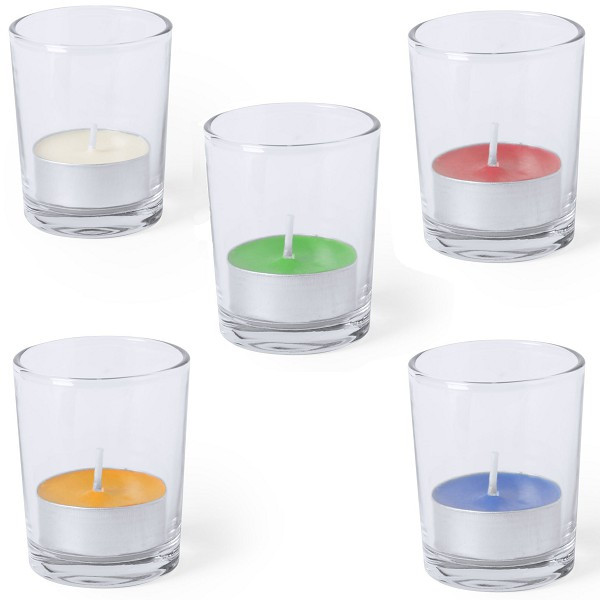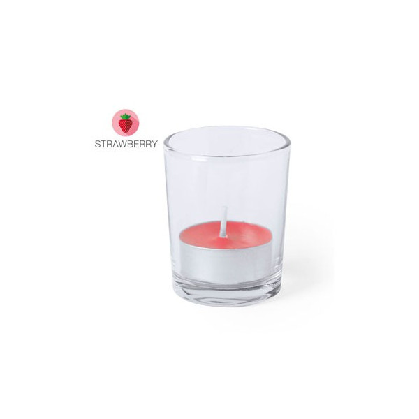 Vela aromática presentada en original tarro de cristal. Disponible en extensa gama de colores y fragancias: blanco en aroma vainilla, rojo en aroma fresa, azul en aroma lavanda, verde en aroma manzana y naranja en aroma naranja. Presentada en caja individual blanca.