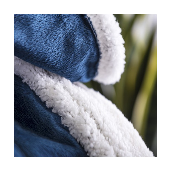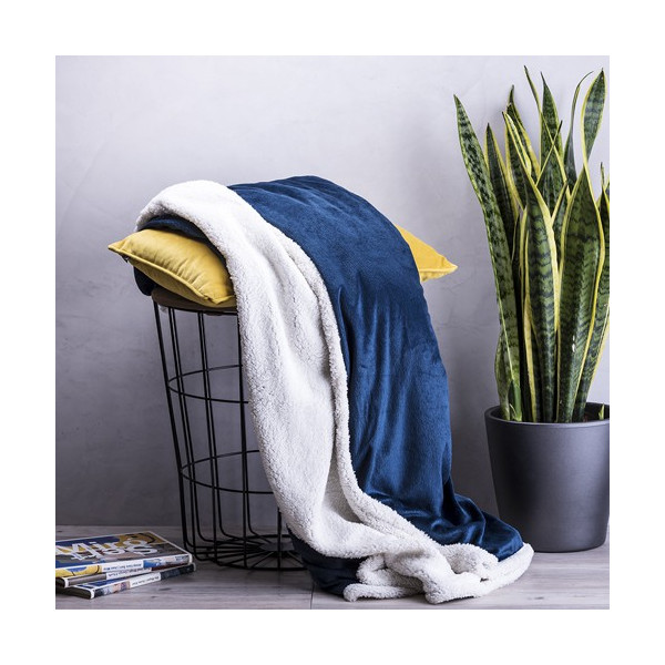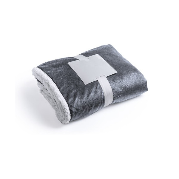 Manta en elegante diseño bicolor de 125x160cm. En suave y cálida combinación de materiales coral fleece y sherpa de 380g/m2. Presentada en cinta con lámina para fácil impresión.