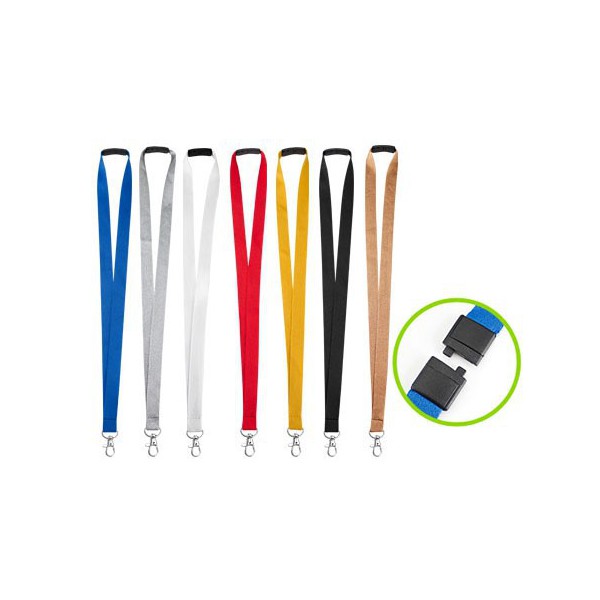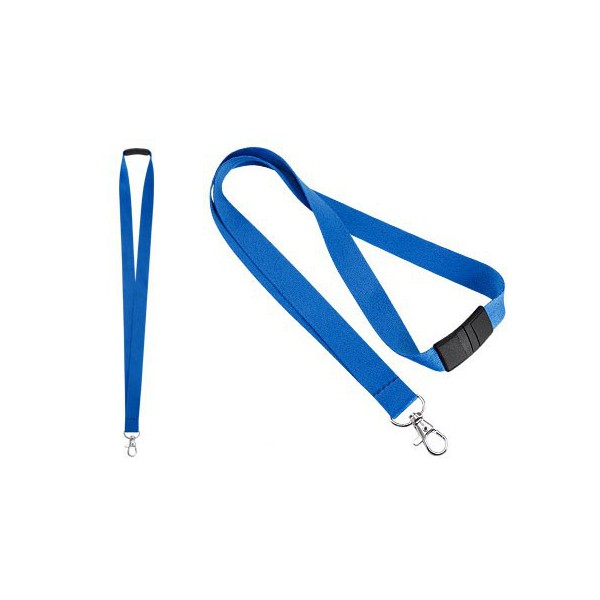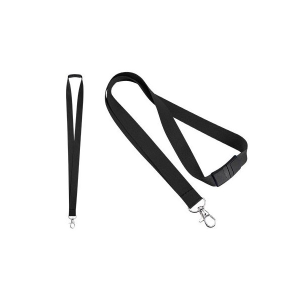 Lanyard Porta-Credencial "Break-Away"de polyester liso de 2cm. de ancho para sublimación, con mosquetón metálico. Incluye pieza plástica de SEGURIDAD que permite separar (abrir) el lanyard ("Break-Away" system) en caso de ATASCAMIENTO.