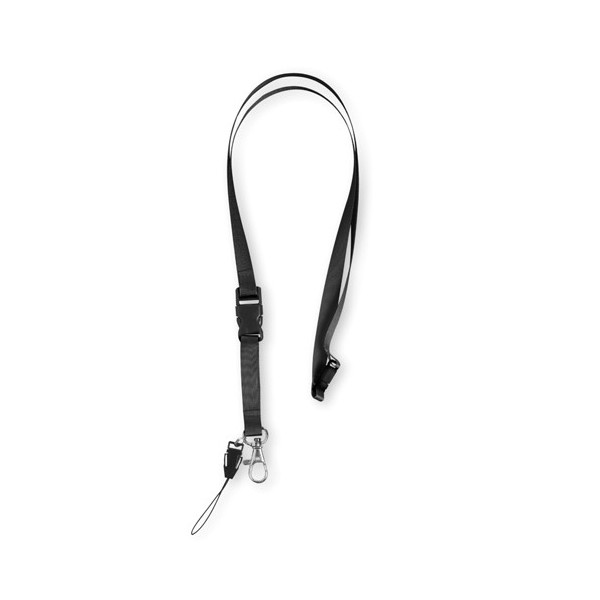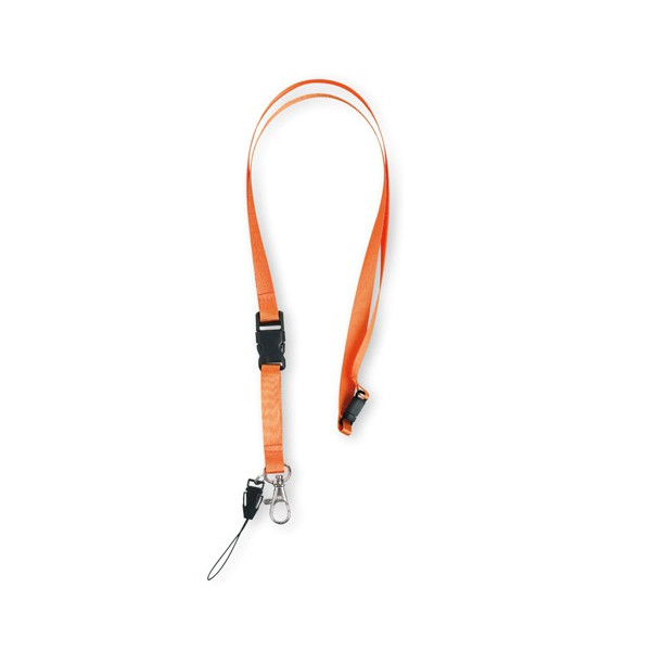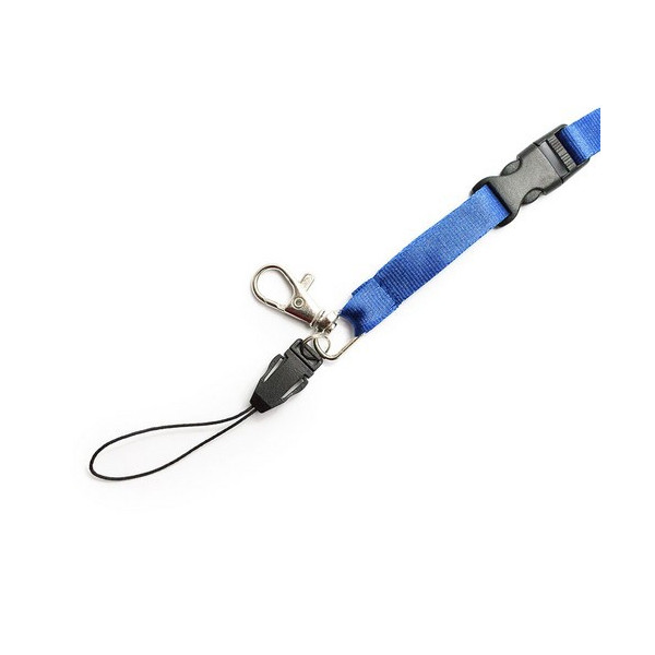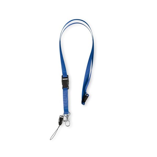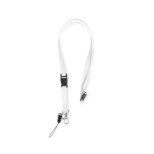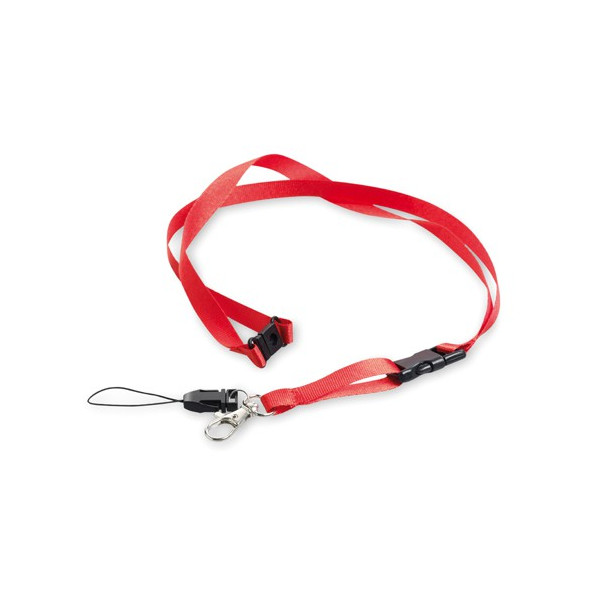 Lanyard en poliéster, desmonntable y cierre de clip.