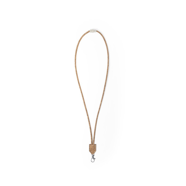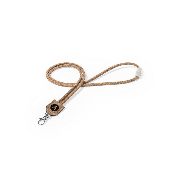 Lanyard de Eco-natura en corcho tubular con cierre de seguridad.