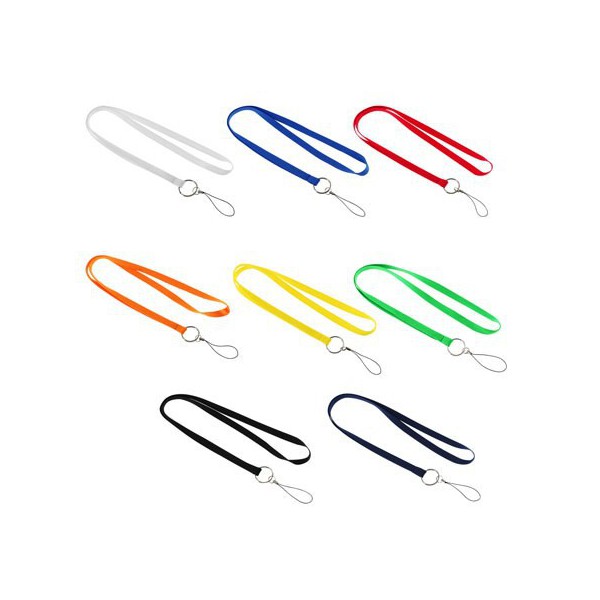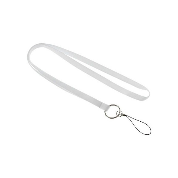 Lanyard de polyester liso de 1 cm de ancho para sublimación, con terminal llavero + porta-accesorios (pendrive o celular).