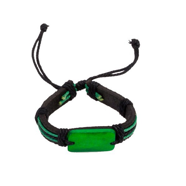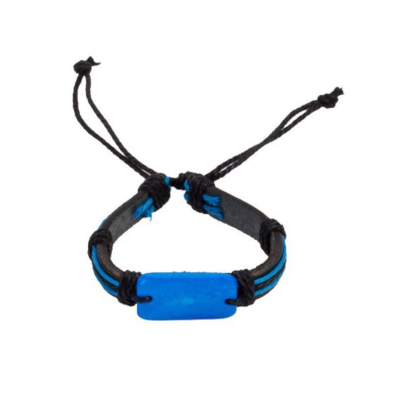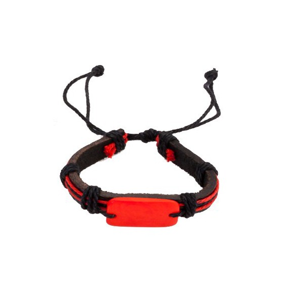 Pulsera ajustable de piel de diseño bicolor y en vivos colores. Con cierre ajustable de hilo reforzado y piedra a juego.