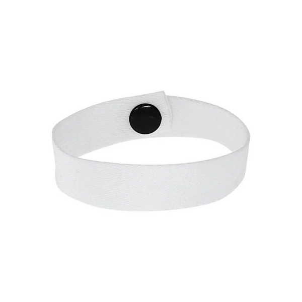 Pulsera promocional de polyester liso de 1.5 cm de ancho para sublimación parcial, con cierre broche negro.