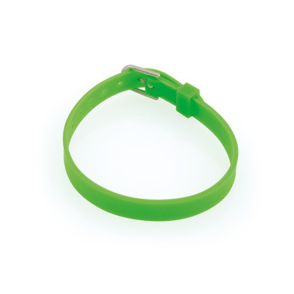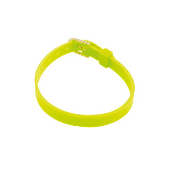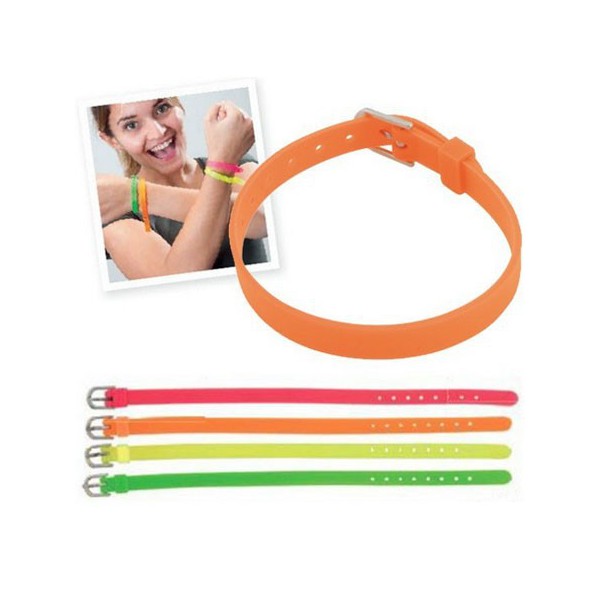 Pulsera de silicona en acabado fluorescente. Con cierre ajustable de hebilla y en variada gama de colores. Ajustable