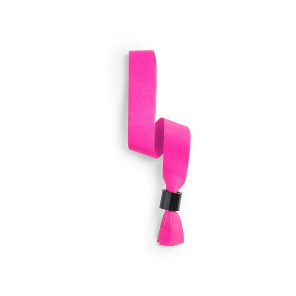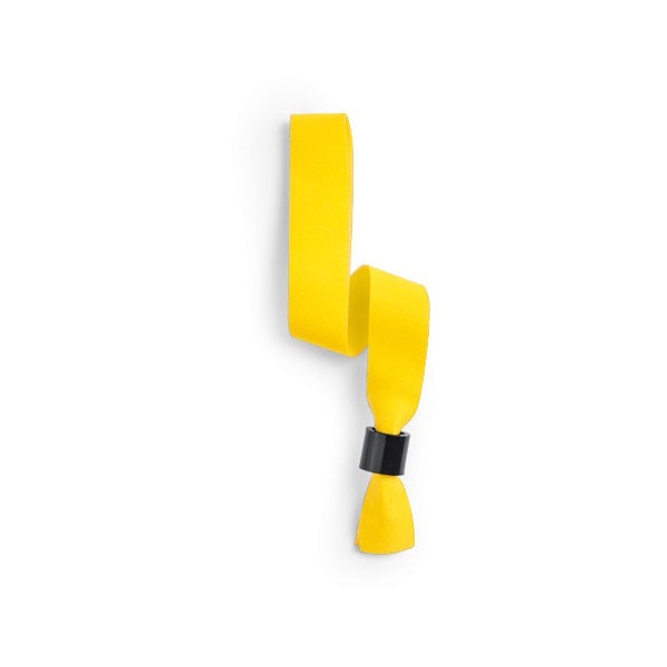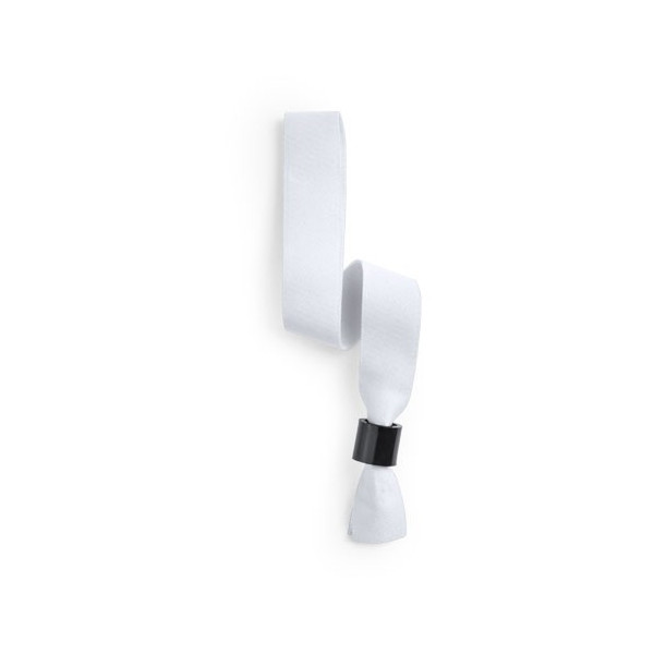 Pulsera con cuerpo acabado en suave poliéster de vivos y variados colores. Con cierre de seguridad en color negro. Color blanco especialmente diseñado para marcaje en sublimación.