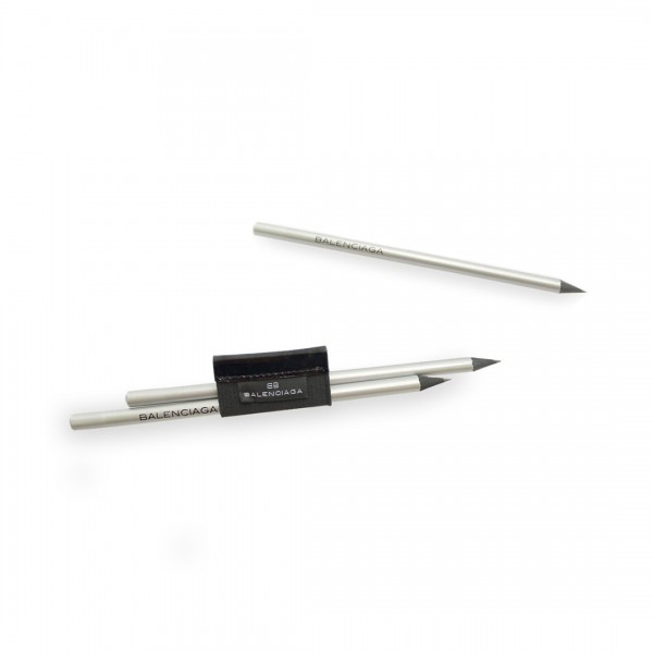 Set de 3 lápices de madera de Balenciaga en sobrio acabado plateado, con logotipo de la marca en el cuerpo.