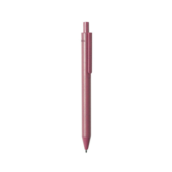 Bolígrafo de línea nature con mecanismo pulsador. Cuerpo en caña de trigo y PP, para así fomentar la utilización de materias primas naturales y reducir las emisiones contaminantes. Clip con amplia superficie de marcaje y disponible en variada gama de colores pastel, con tinta azul. Con distintivo Wheat Straw en la parte superior del bolígrafo.