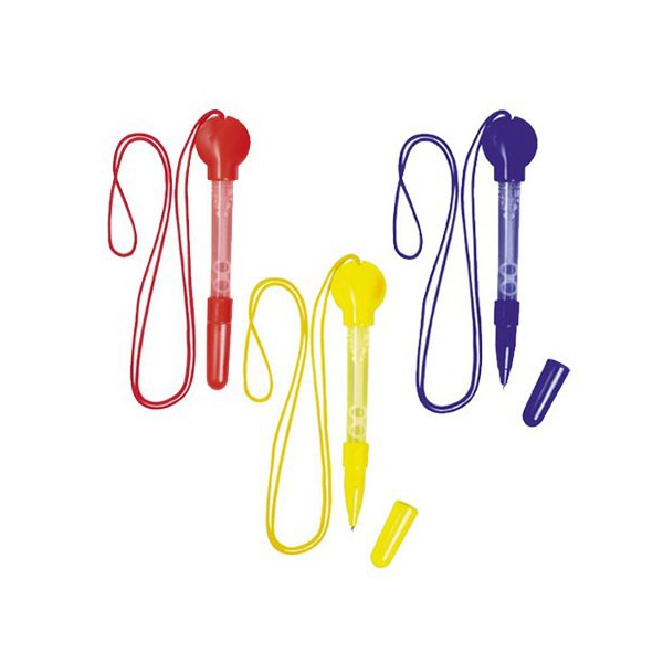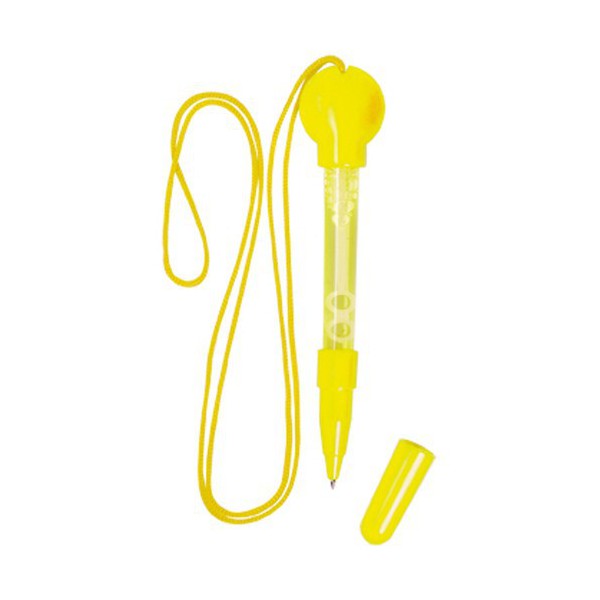 Bolígrafo para hacer pompas de jabón en divertidos colores. Con lanyard y capucha a juego.