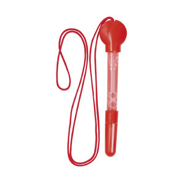 Pompas de jabón y lanyard.