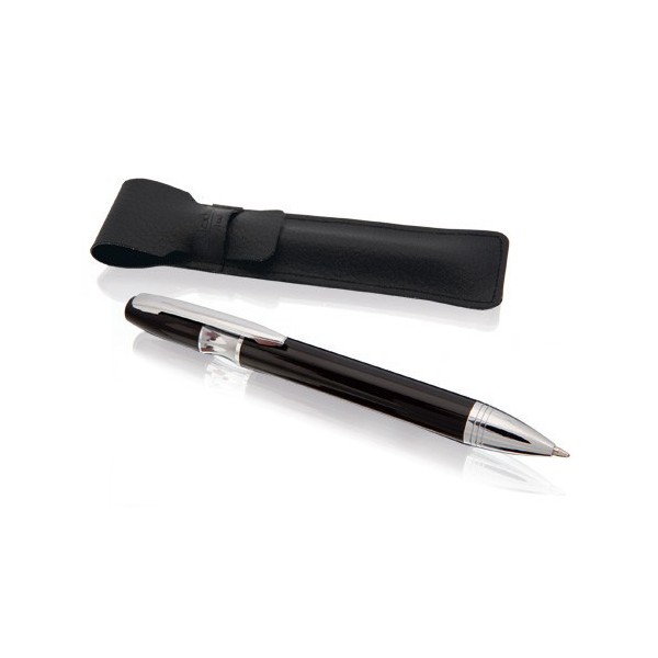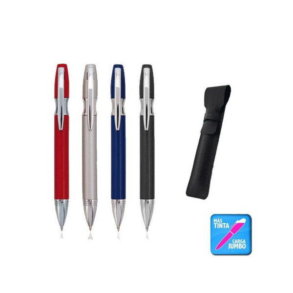 Con original anilla, clip y punta en acabado plateado brillante y logotipo de la marca en parte superior.