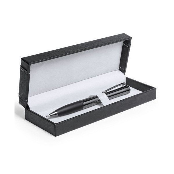 De cuerpo metálico en suave acabado plateado brillante con clip a juego y suave empuñadura en negro.