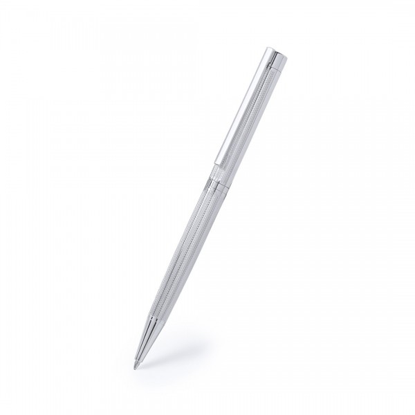De cuerpo metálico antideslizante en acabado plateado brillante con clip a juego.