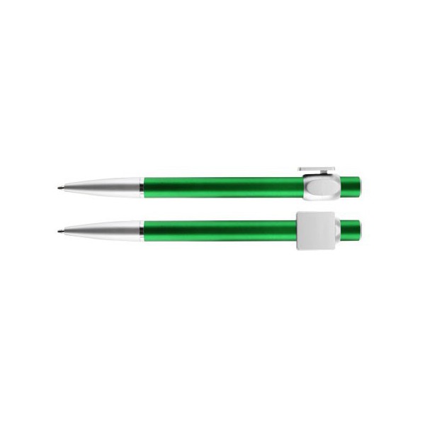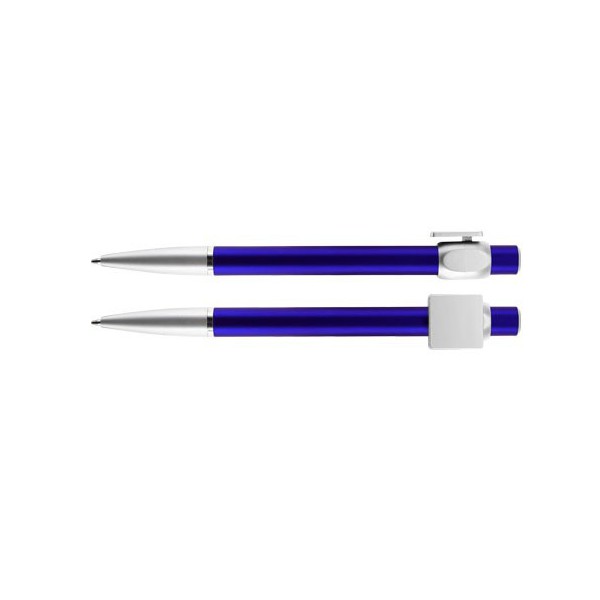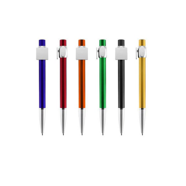 Cuerpo de color metalizado y clip cuadrado plateado, ideal para imprimir logotipos.