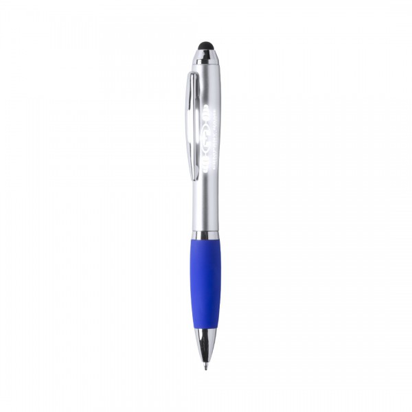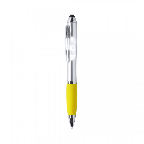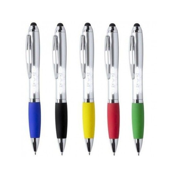 Bolígrafo puntero de mecanismo giratorio con luz led interior y cuerpo especialmente diseñado para marcaje en láser, iluminando así el logotipo. Con empuñadura en variada gama de vivos colores.