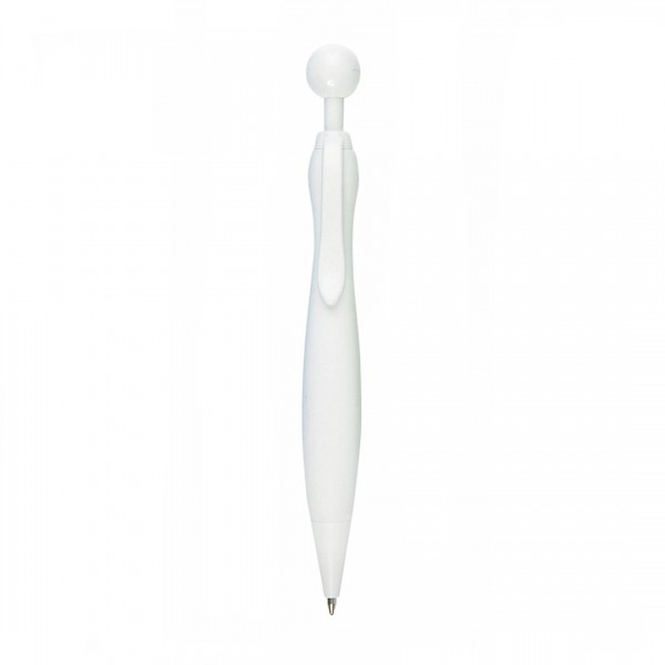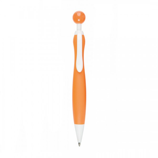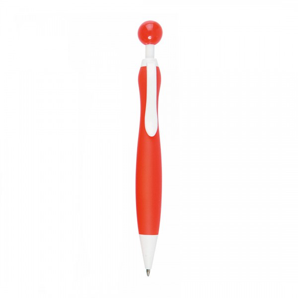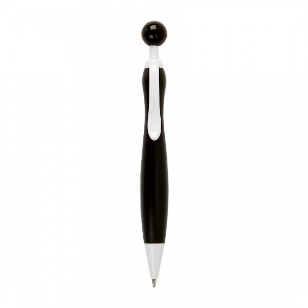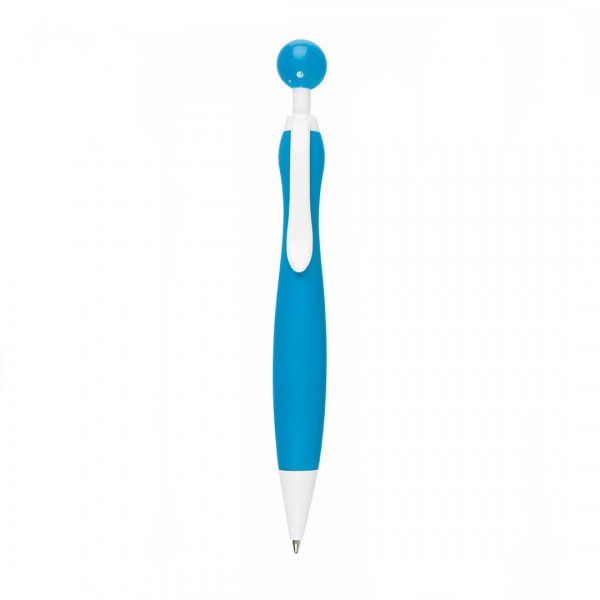 Bolígrafo de mecanismo pulsador de atrevido diseño bicolor con accesorios en color blanco sólido y cuerpo curvado de suave acabado en llamativos colores sólidos. Con original clip pulsador en forma de bola a juego.