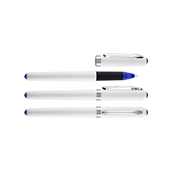 Lápiz tipo Roller plástico blanco, con terminales plateados.
