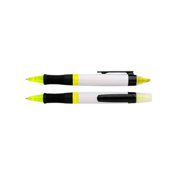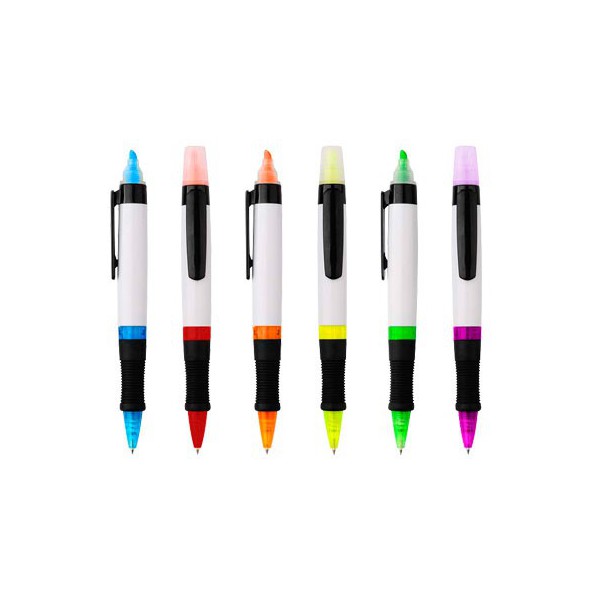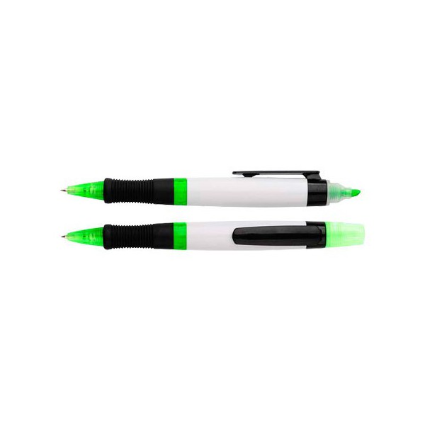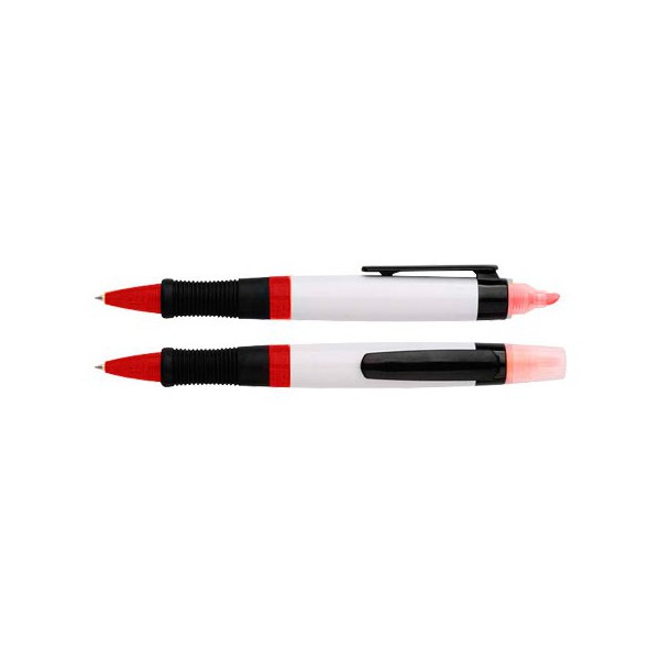 Lápiz (bolígrafo) con cuerpo blanco y destacador.