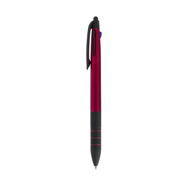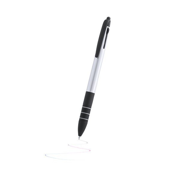 Cuerpo en color con sistema touch y puntero 3 en 1 de mecanismo pulsador retráctil. Con accesorios en negro y suave empuñadura ergonómica en color negro con anillas a juego.