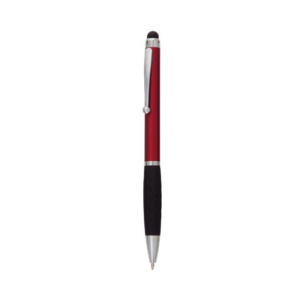 Cuerpo en llamativos colores metalizados brillantes y suave empuñadura. Sistema touch y mecanismo giratorio con accesorios en color plateado brillante y clip metálico.