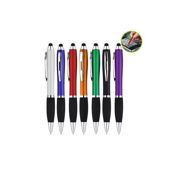 Cuerpo en color y empuñadura en negro. Pulsador goma touch en color negro.