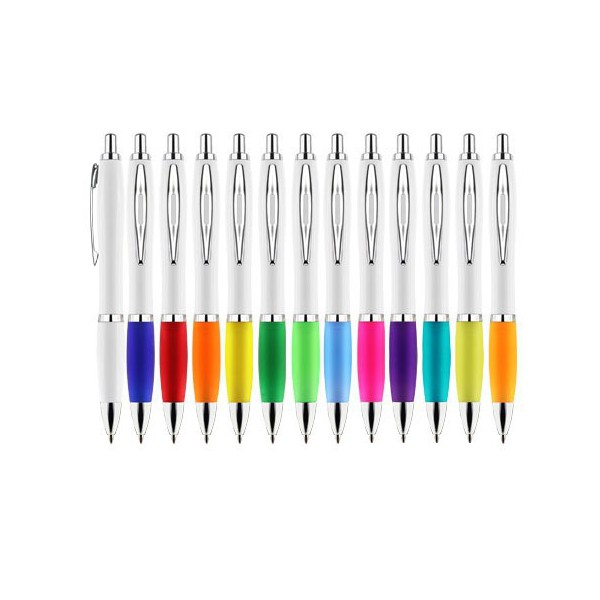 Cuerpo en color blanco sólido con empuñadura de colores.