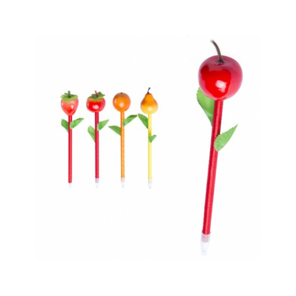 Bolígrafo fruta con cuerpo en suave acabado brillante de vivos colores y con capucha a juego.