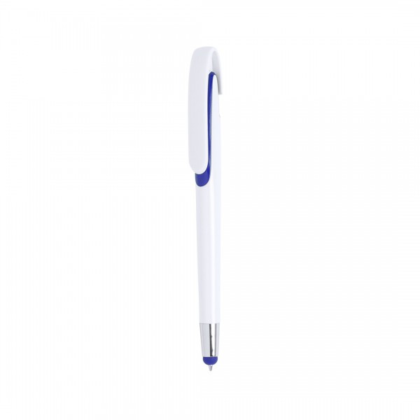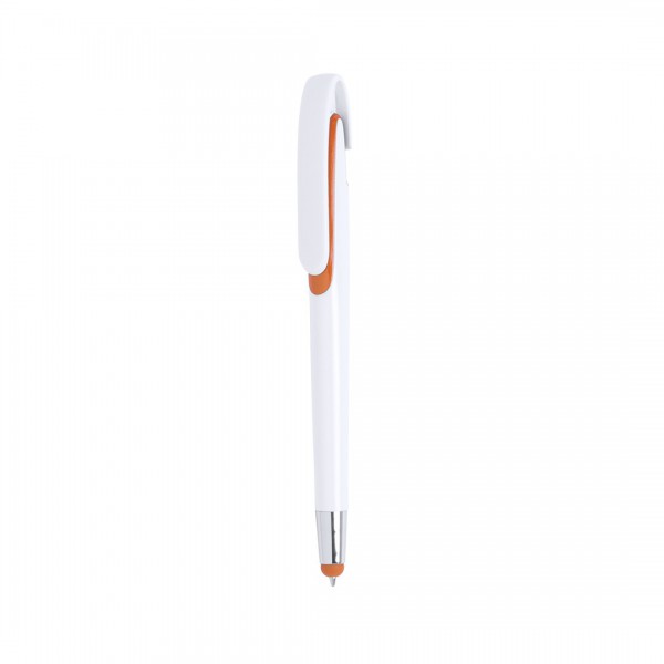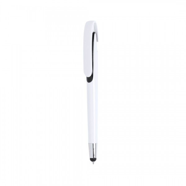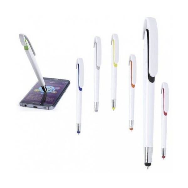 Bolígrafo con sistema TOUCH de mecanismo pulsador con cuerpo de acabado brillante en color blanco y accesorios en variada gama de vivos colores.