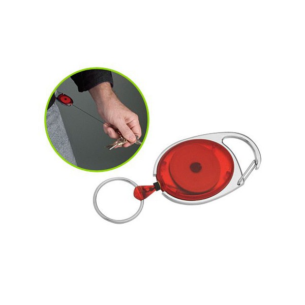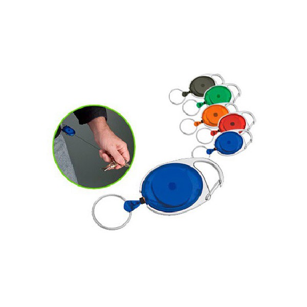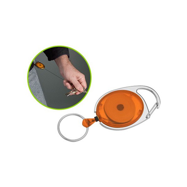 Llavero con Mosquetón y extensor retráctil, en color traslúcido.