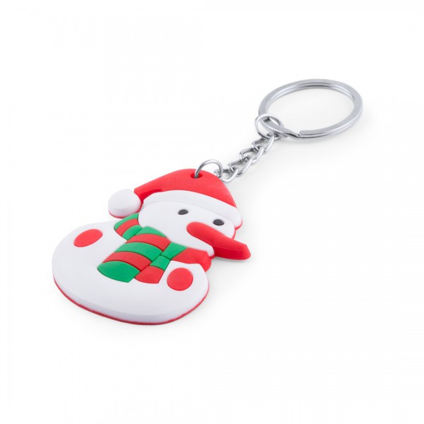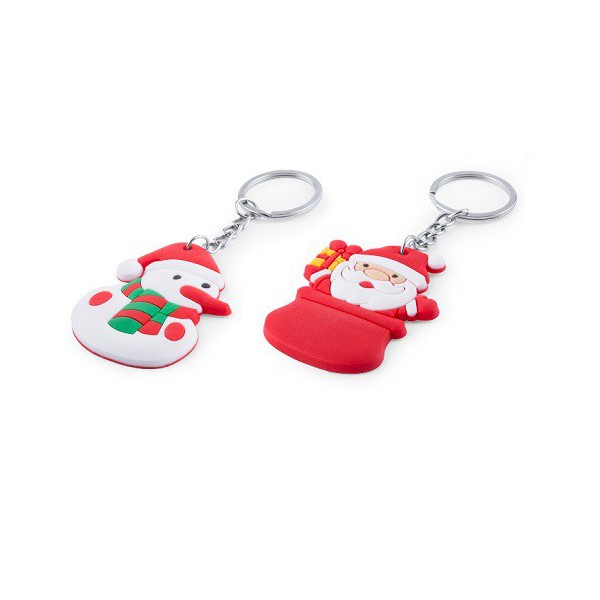Llavero en suave PVC troquelado con originales diseños navideños de Papá Noel y muñeco de nieve.