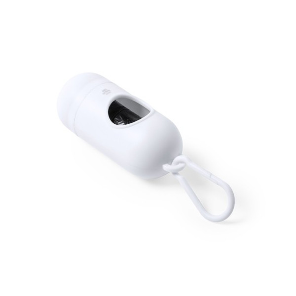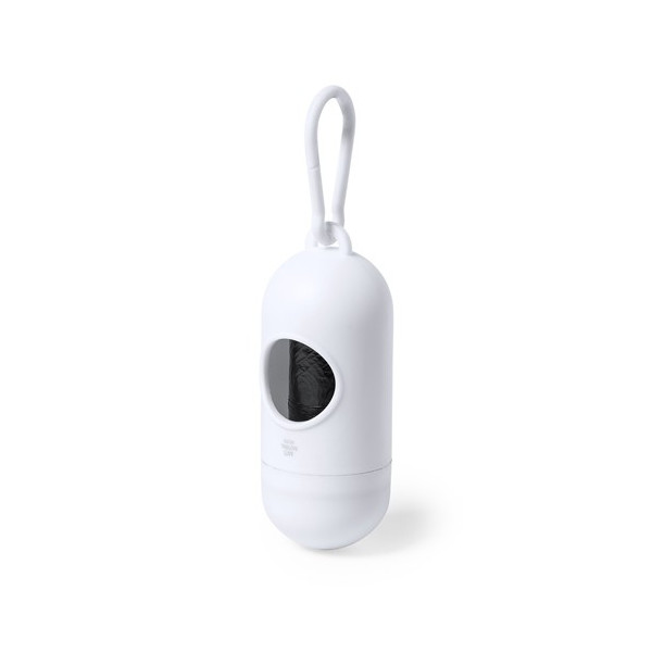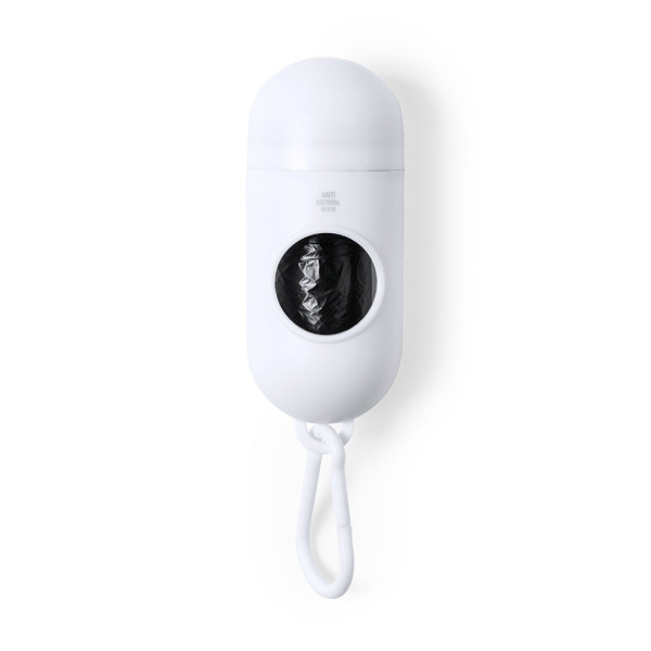 Dispensador de bolsas antibacteriano para mascotas, con resistente cuerpo en acabado sólido. Mosquetón de transporte a juego, con 15 bolsas biodegradables incluidas. Presentado en bolsa individual.