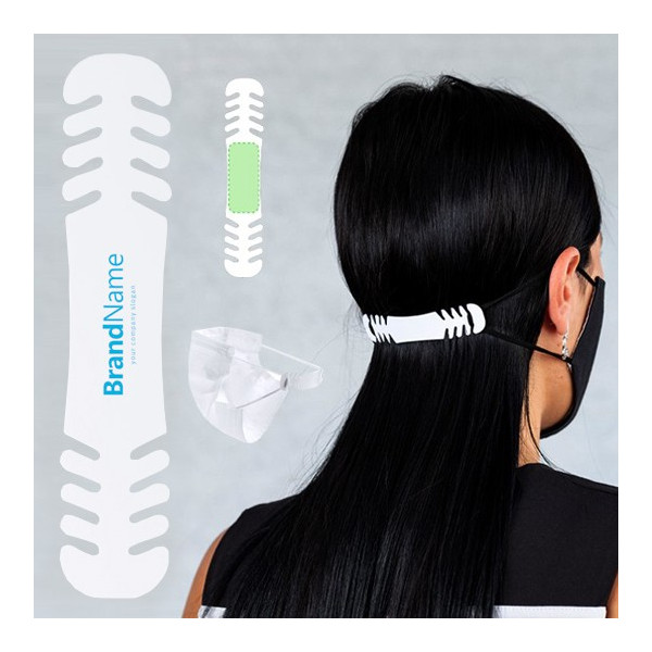 Confortable ajustador flexible para mascarilla en resistente y cómodo material PVC. Tamaño ideal para niños y adultos. Fácil de desinfectar después de cada uso y con 4 posiciones de ajuste. Disponible en color blanco.
