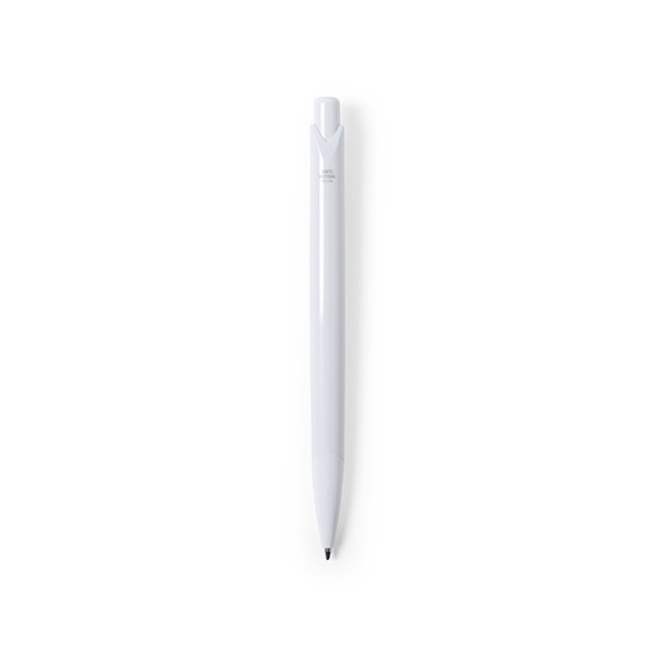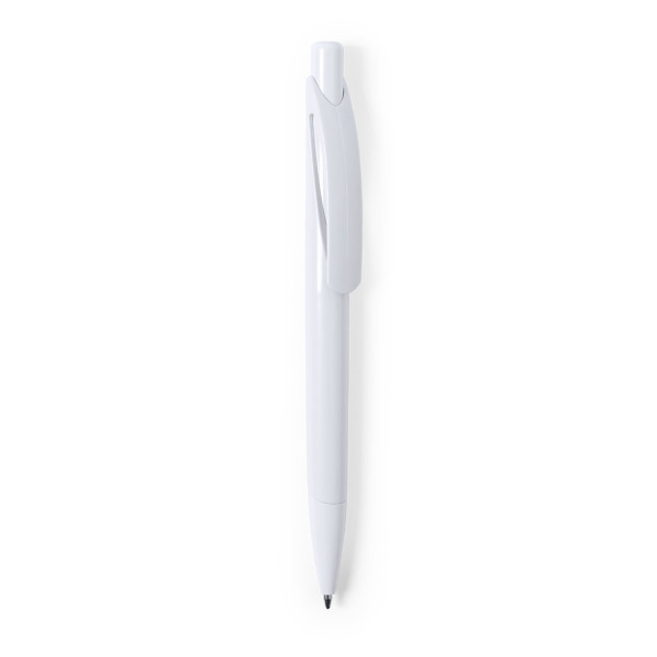 Bolígrafo antibacteriano de mecanismo pulsador. Diseño monocromático y cuerpo de suave acabado, con original clip curvado, especialmente diseñado para marcaje en tampografía. Tinta azul.