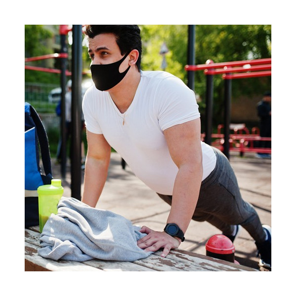 Mascarilla higiénica reutilizable elástica en tela soft shell.