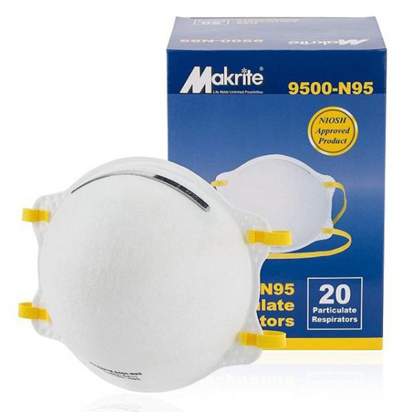 Utilízalo para: protección personal quirúrgica, construcción, mejora del hogar, limpieza, corte, jardinería y proyectos de bricolaje. Paquete de 20 máscaras respiradoras individuales Makrite 9500-N95.
