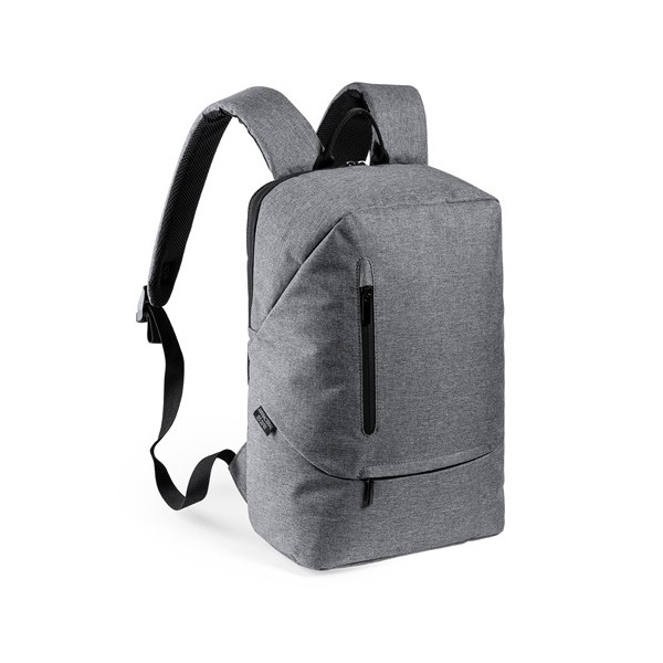 Mochila antibacteriana en poliéster con cierre y bolsillos en frontal.