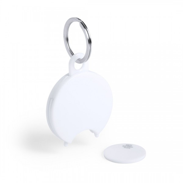 Llavero moneda antibacteriano fabricado en material PS de acabado sólido con moneda extraíble. Presentado en bolsa individual. Los productos con tratamientos antibacterianos son capaces de reducir drásticamente las cargas bacterianas presentes en las superficies de los materiales, gracias a la incorporación de agentes microbianos permanentes estáticos, con alta efectividad para inhibir y prevenir la contaminación bacteriana. Artículo de acuerdo al estándar ISO 22196, que determina la actividad antibacteriana en materiales plásticos y superficies no porosas, lo que permite conocer la efectividad de inhibición microbiana que tienen los aditivos sobre los objetos tratados mediante una evaluación cuantitativa.