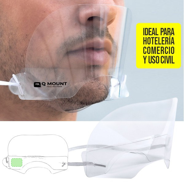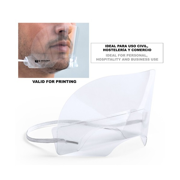 Pantalla buco-nasal en resistente material PET, con protector para barbilla y cómodo elástico de ajuste para la cabeza. Proporciona aislamiento frente a salpicaduras y partículas en zonas especialmente sensibles, como el área de la nariz y la boca. Fácil de desinfectar después de cada uso y especialmente diseñado para situaciones en las que resulta necesario que la boca resulte visible (reuniones, lectura de labios por sordomudos). Fabricada con materiales aptos para el contacto con la piel, con terminaciones diseñadas para un uso prolongado, sin provocar incomodidad o irritaciones. De fácil montaje, disponible manual de instrucciones.