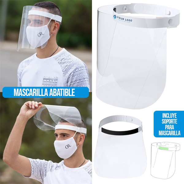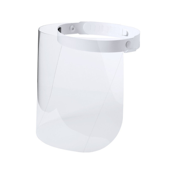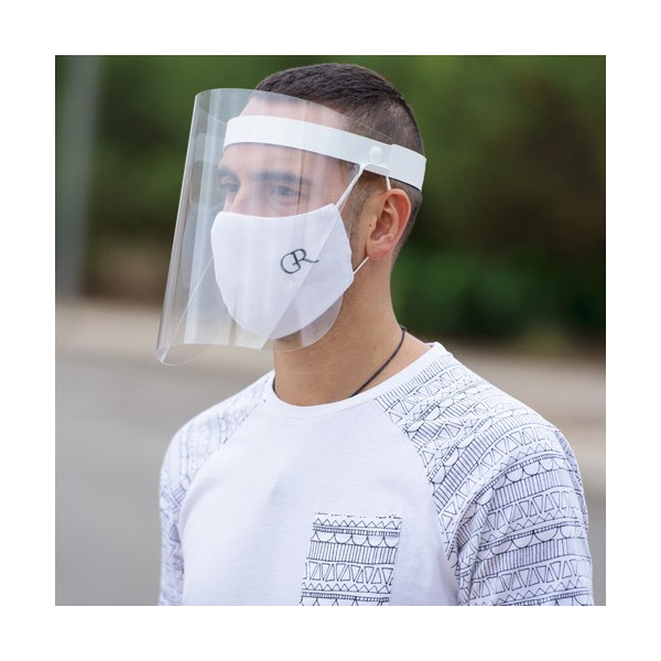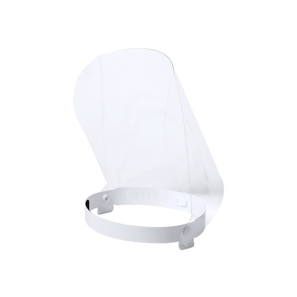 Pantalla facial abatible en resistente PET. Con cinta ajustable para la cabeza en PP y almohadilla de protección para un cómodo ajuste en la frente. Fácil de desinfectar después de cada uso, con soportes laterales para las bandas elásticas de la mascarilla. Además de un amplio campo de visión, proporciona aislamiento frente a salpicaduras y partículas en zonas especialmente sensibles, como el área ocular, nariz y boca. Idónea como barrera de protección higiénica adicional a la distancia social y/o al uso de mascarillas. Fabricada con materiales aptos para el contacto con la piel, con terminaciones diseñadas para un uso prolongado, sin provocar incomodidad o irritaciones. De fácil montaje, disponible manual de instrucciones.