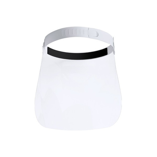 Pantalla facial abatible con cinta ajustable y almohadilla de protección.