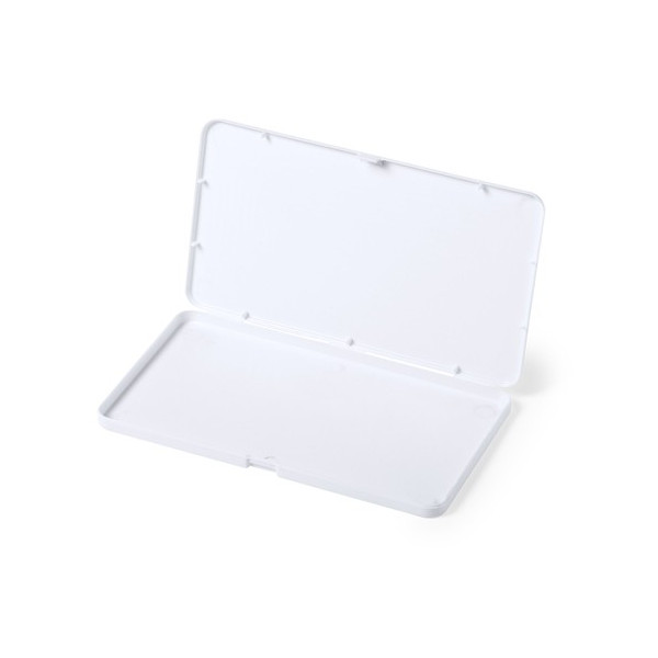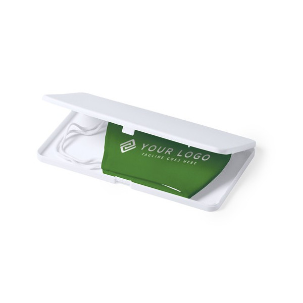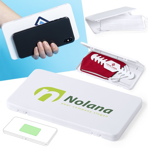 Portamascarillas en resistente material PP de acabado sólido y en tono blanco mate. Ideal para el transporte y la protección de todo tipo de mascarillas y para la creación de sets con diversos productos higiénicos. Fácil de desinfectar después de cada uso.