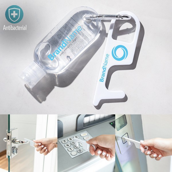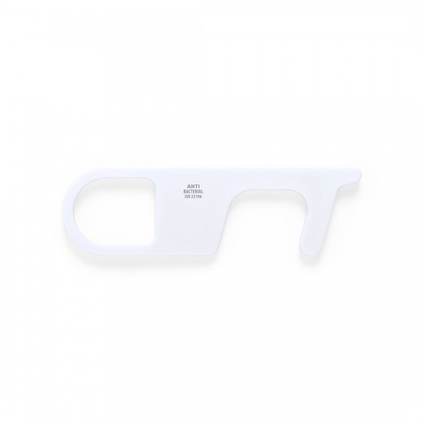 Llavero higiénico antibacteriano y anti-contacto, fabricado en resistente ABS de acabado sólido. Especialmente diseñado para evitar tocar con las manos superficies de uso común (manivelas de puertas, interruptores, grifos de uso público, cajeros automáticos...). Con cómodo troquel para el dedo y presentado en bolsita individual. Recomendado para marcaje en tampografía. Los productos con tratamientos antibacterianos son capaces de reducir drásticamente las cargas bacterianas presentes en las superficies de los materiales, gracias a la incorporación de agentes microbianos permanentes estáticos, con alta efectividad para inhibir y prevenir la contaminación bacteriana. Artículo de acuerdo al estándar ISO 22196, que determina la actividad antibacteriana en materiales plásticos y superficies no porosas, lo que permite conocer la efectividad de inhibición microbiana que tienen los aditivos sobre los objetos tratados mediante una evaluación cuantitativa.