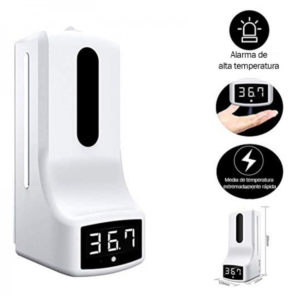 El termómetro K9 infrarrojo sin contacto de montaje en pared, es una máquina automática dispensador de alcohol gel, y además puede medir la temperatura a una distancia de 5-10cm desde la palma de la mano.