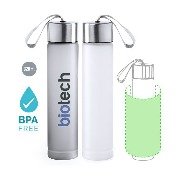 Botella o recipiente de 320ml en alta calidad, en material resistente al calor (70ºC).