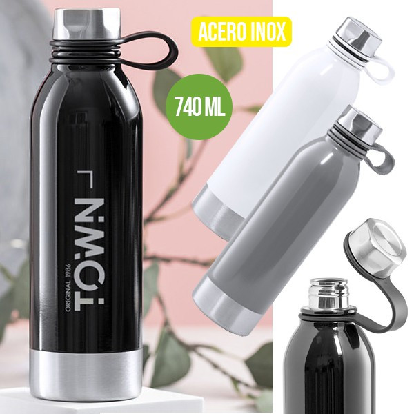 Botella- Envase de 740ml bicolor en acero inox brillante.