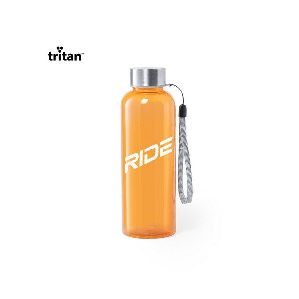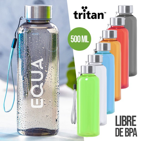 Bidón de 500ml de capacidad. Libre de BPA, con cuerpo fabricado en tritán transparente y de alta resistencia al calor.