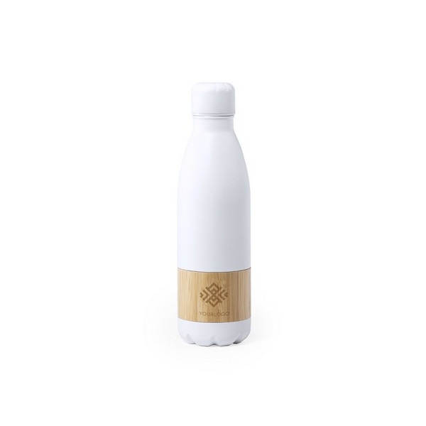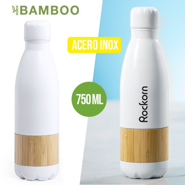 Botella- Envase de 750ml de acero inox mate color blanco y franja Bamboo.