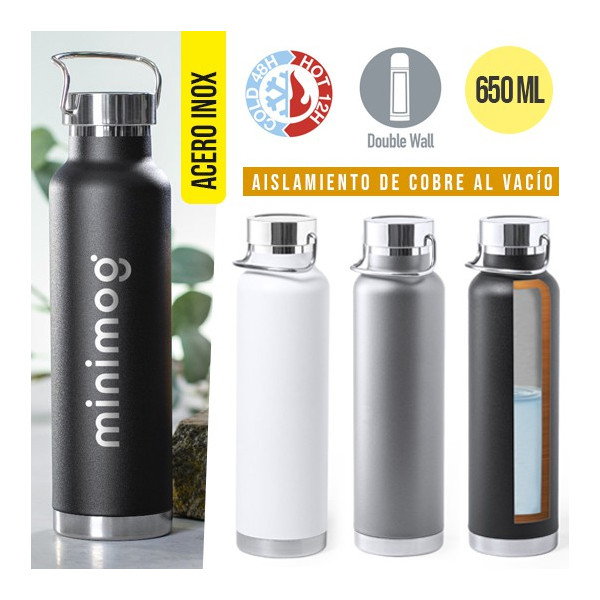 Botella- Envase de 650ml de diseño térmico de doble capa de cobre al Vacío.