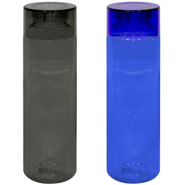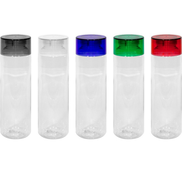 Botella cuerpo transparente y tapa a rosca.