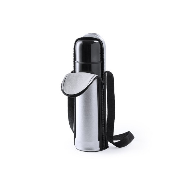 Funda para bidón o termo en resistente y aislante PVC de acabado plateado.